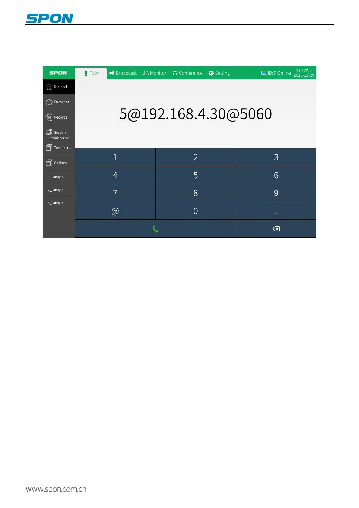 When terminal is offline, input the call target ID+@+IP+@+IP port on the dial pad, and then click the call button to make an
