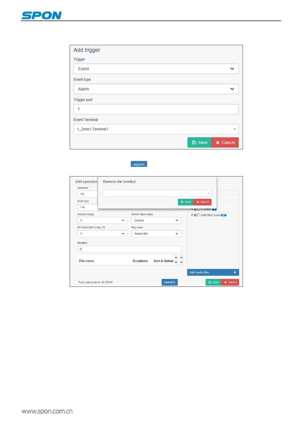 2) Add operation: when enter into the add operation interface, check the terminal that receives the alarm broadcast in the