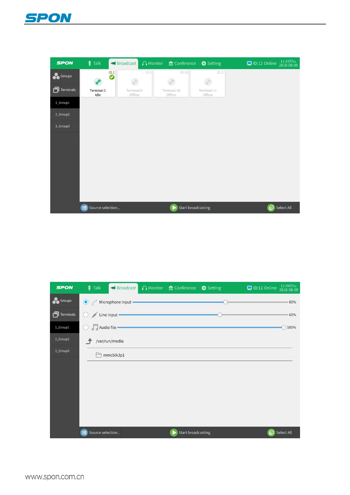 Microphone input: The sound source is the microphone rod input, and the user performs real-time talk and broadcast
