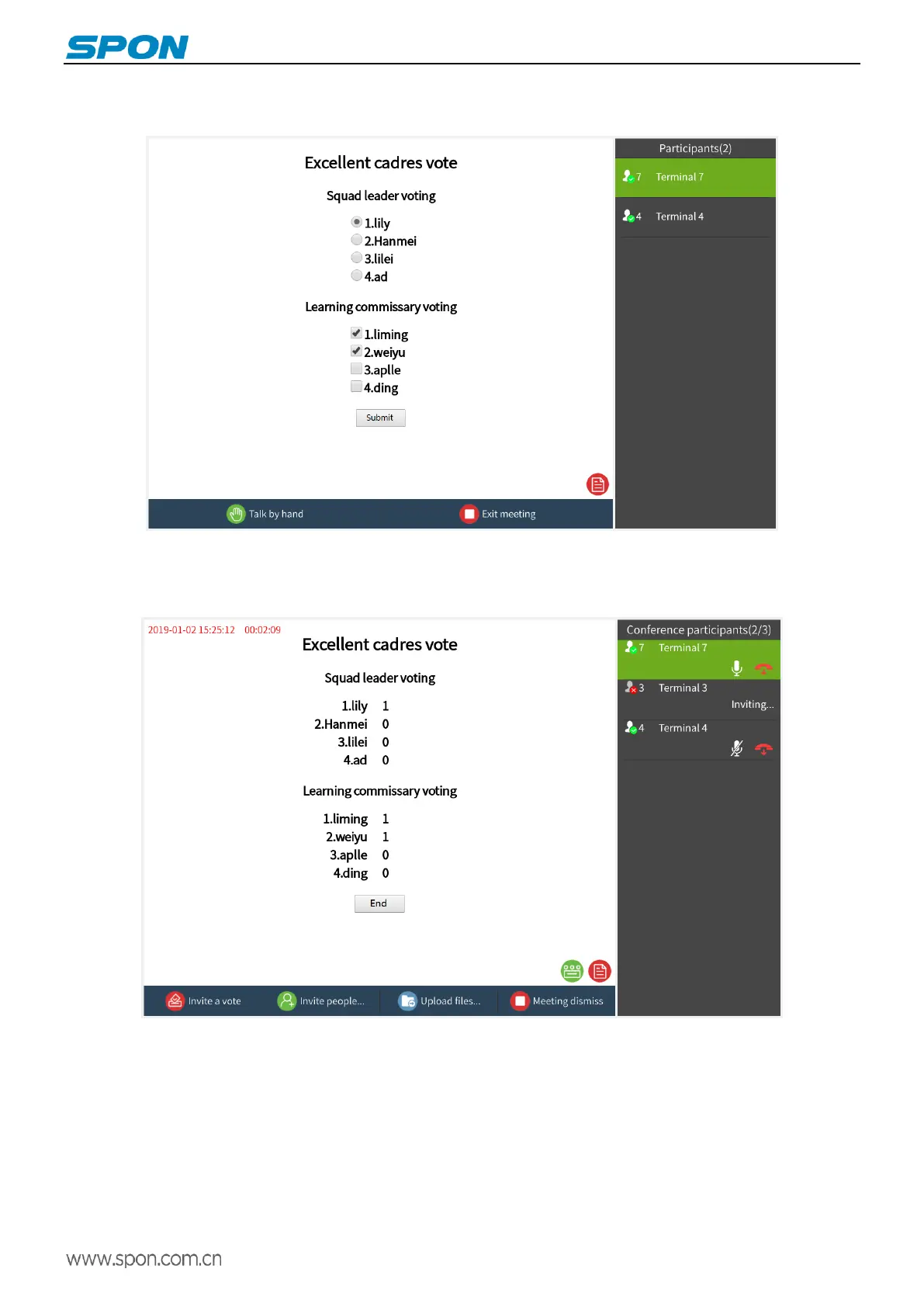③Conference participants can select the corresponding option directly on the screen and press the “Submit” button to