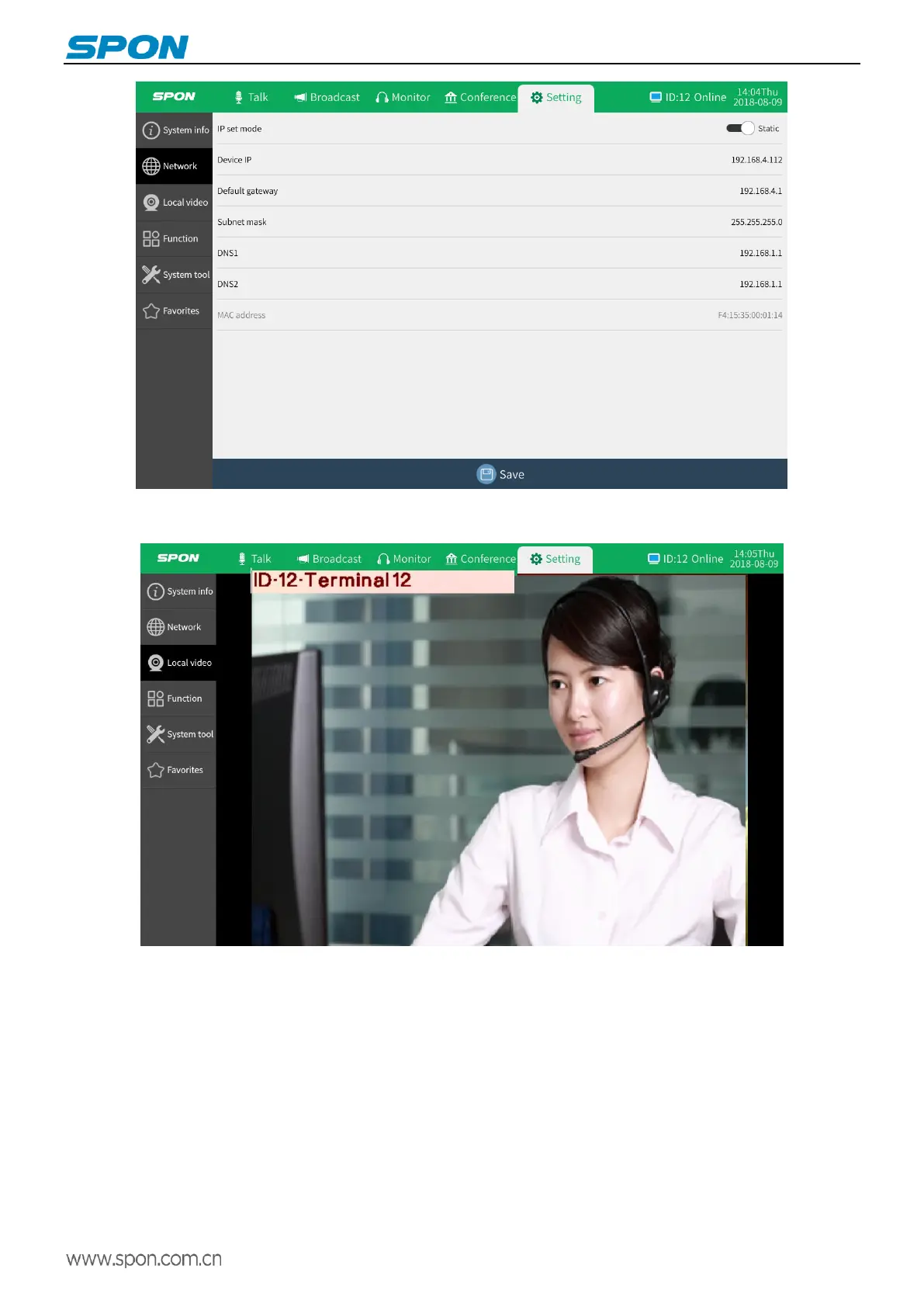 Function settings: Setting loop monitor time and whether the intercom interface, broadcast interface, and monitor interface
