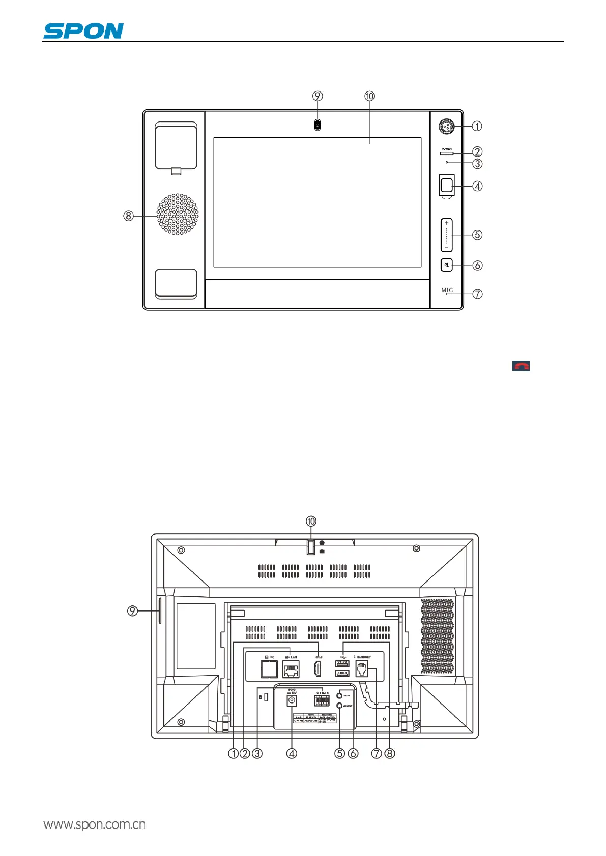 ②Working indicator: offline status is red, device has login to the SIP sever is green.