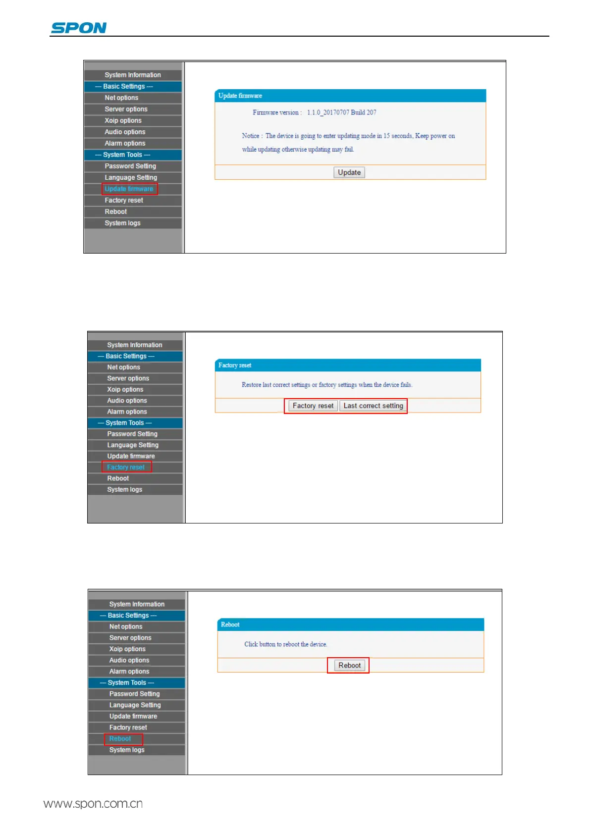 Spon xc-9601 - Reset to Defaults