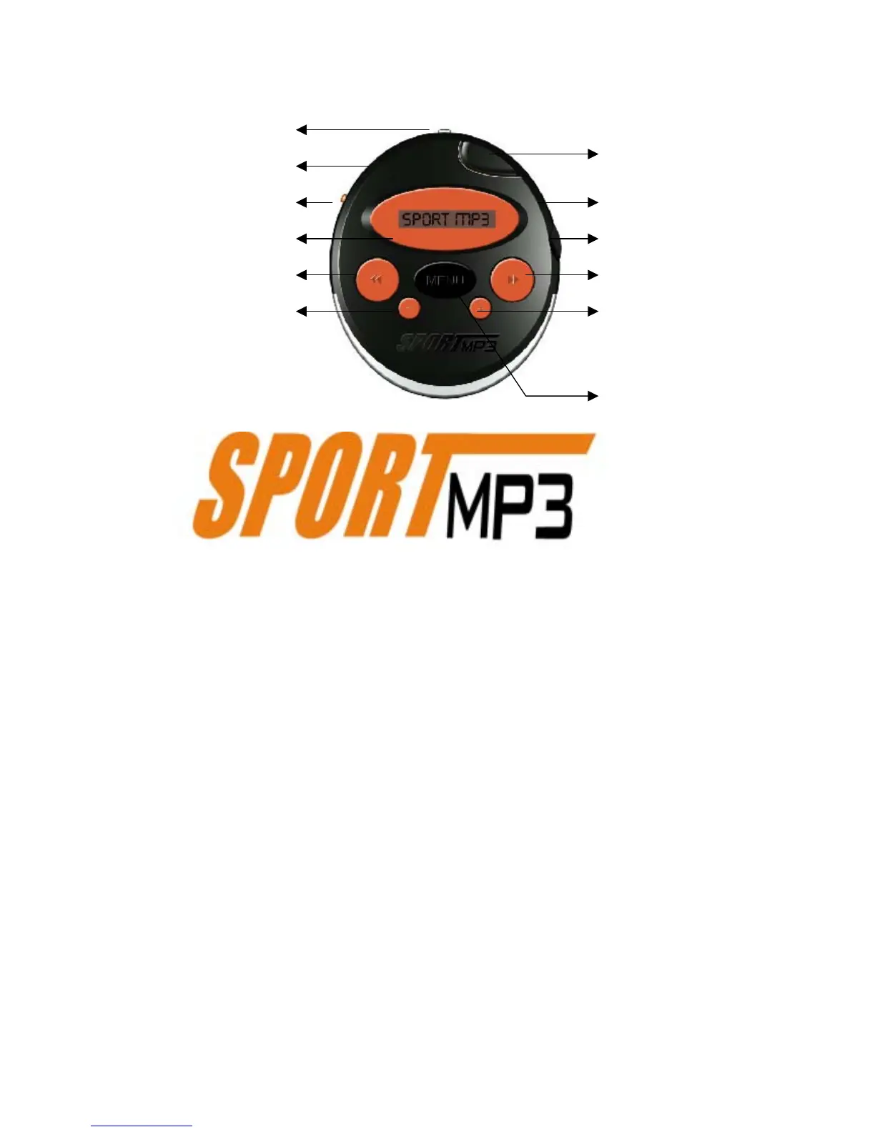 SPORT MP3 MP3 player - Product Diagram and Key Functions; Device Layout and Controls; Function Key Explanations