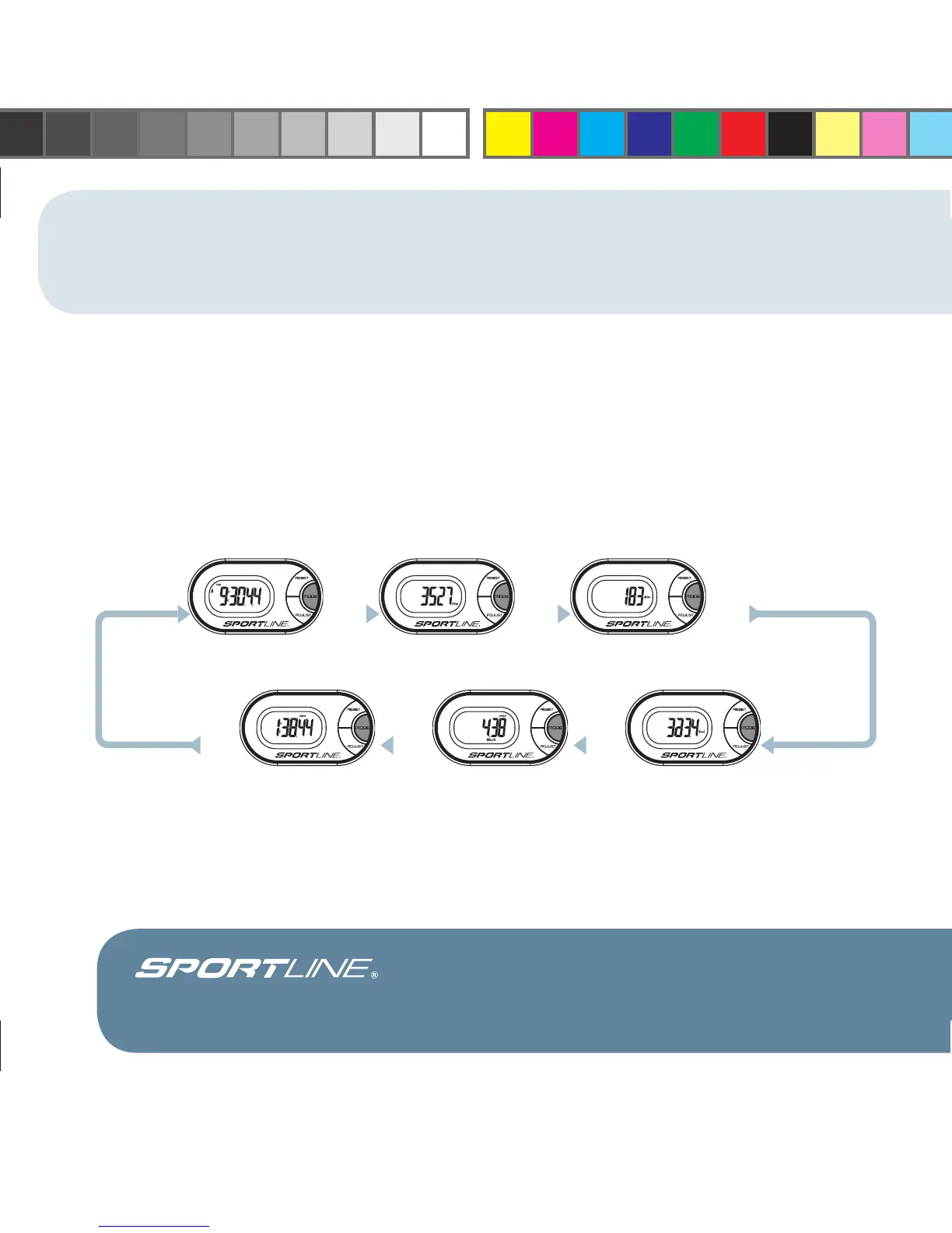 The Sportline Qlip has 6 main operating modes: Time, Step, Distance, Calories, Speed, and