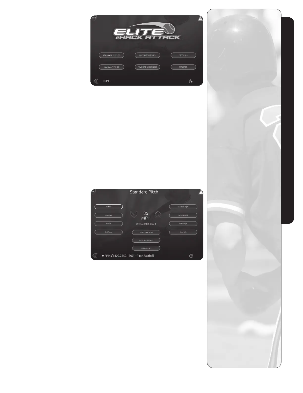 SelectfromthelistofsavedPitches.Pitchesmaybesaved,activated,modied