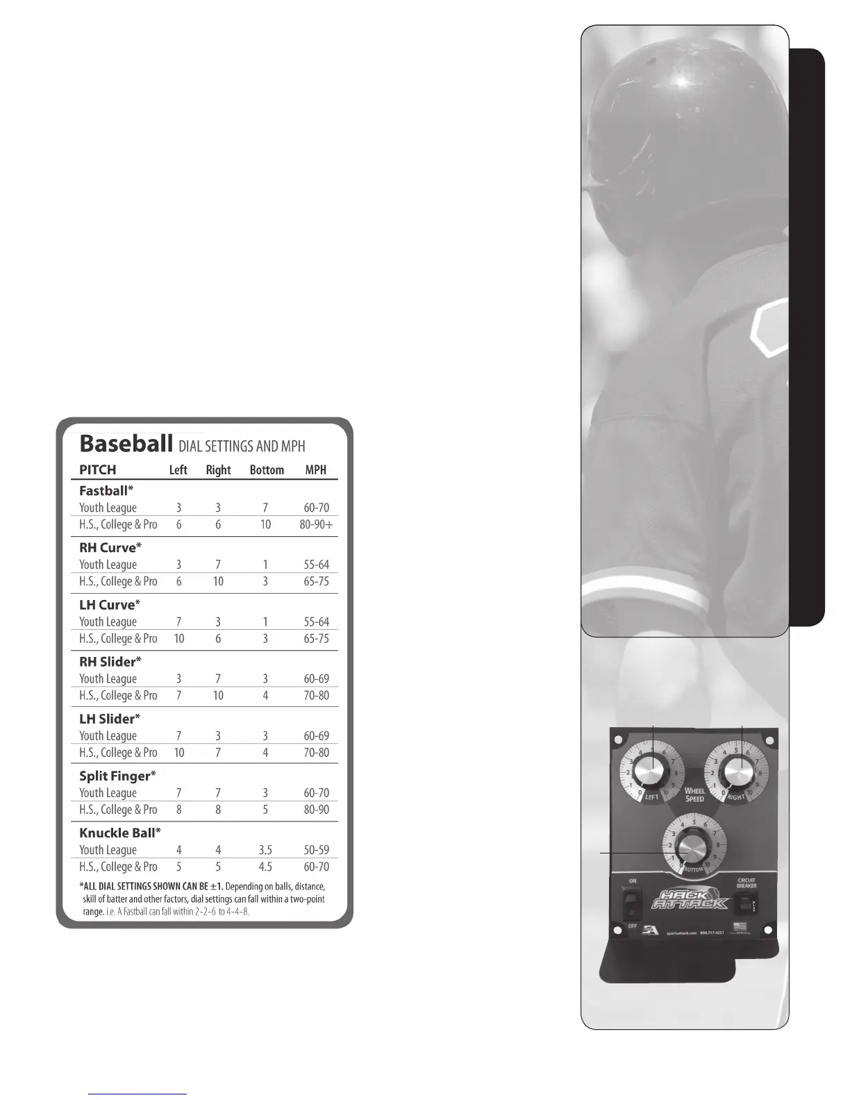 for major league hitters only. Adjustments for players of lesser skill can be made from these settings.