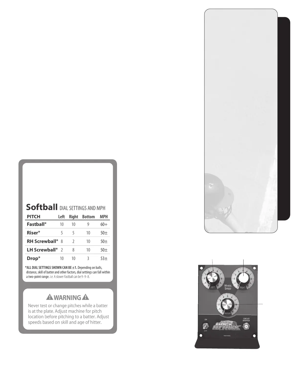 Always have the batter step away from the batter box before adjusting speed or spin.
