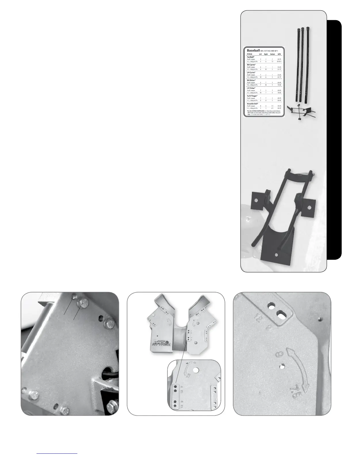 7. Install baseball feed chute (Reuse the three bolts that held the softball chute to secure