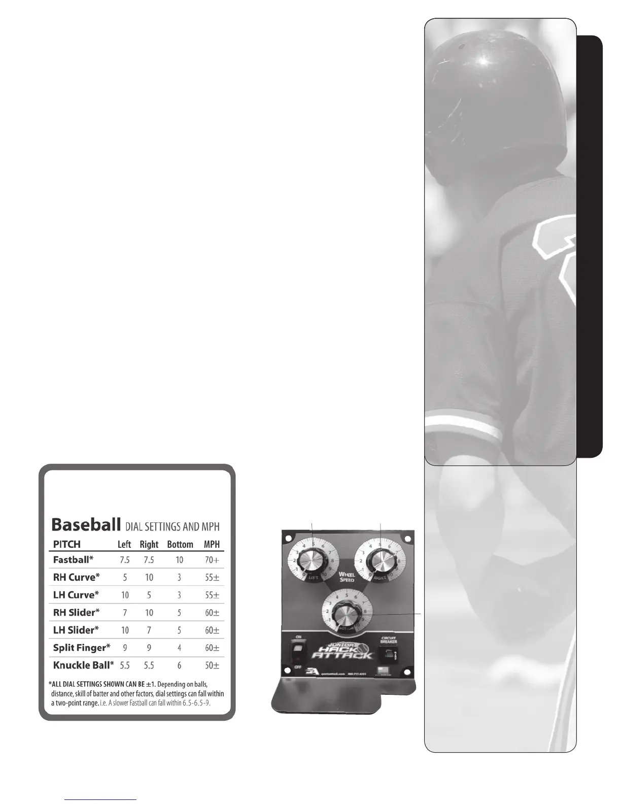 ALWAYS have the batter step away from the batter box before adjusting speed or spin.