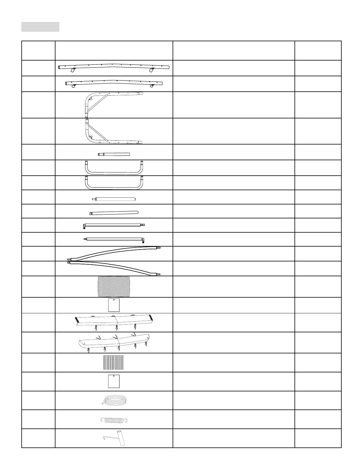 TRAMPOLINE AND ENCLOSURE PARTS LIST