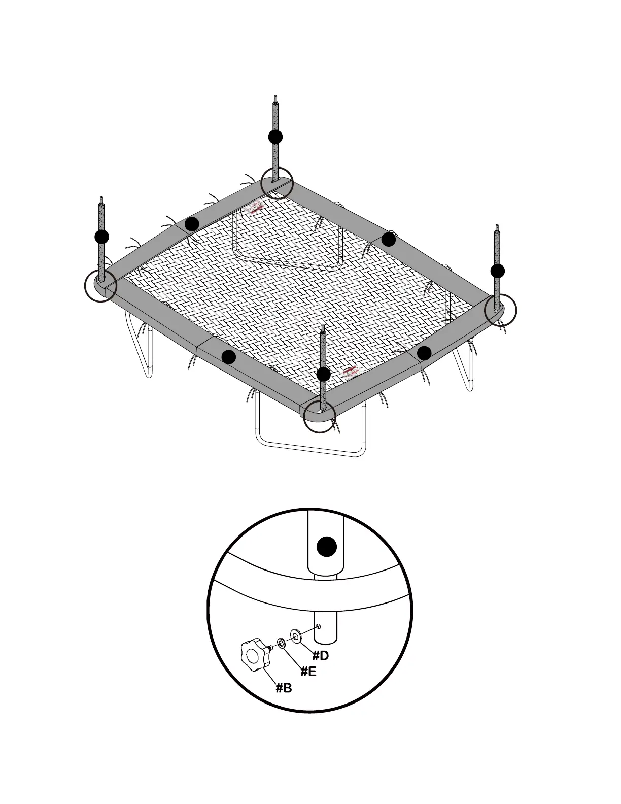Place the frame pads on top of the trampoline Parts 15 and 16.