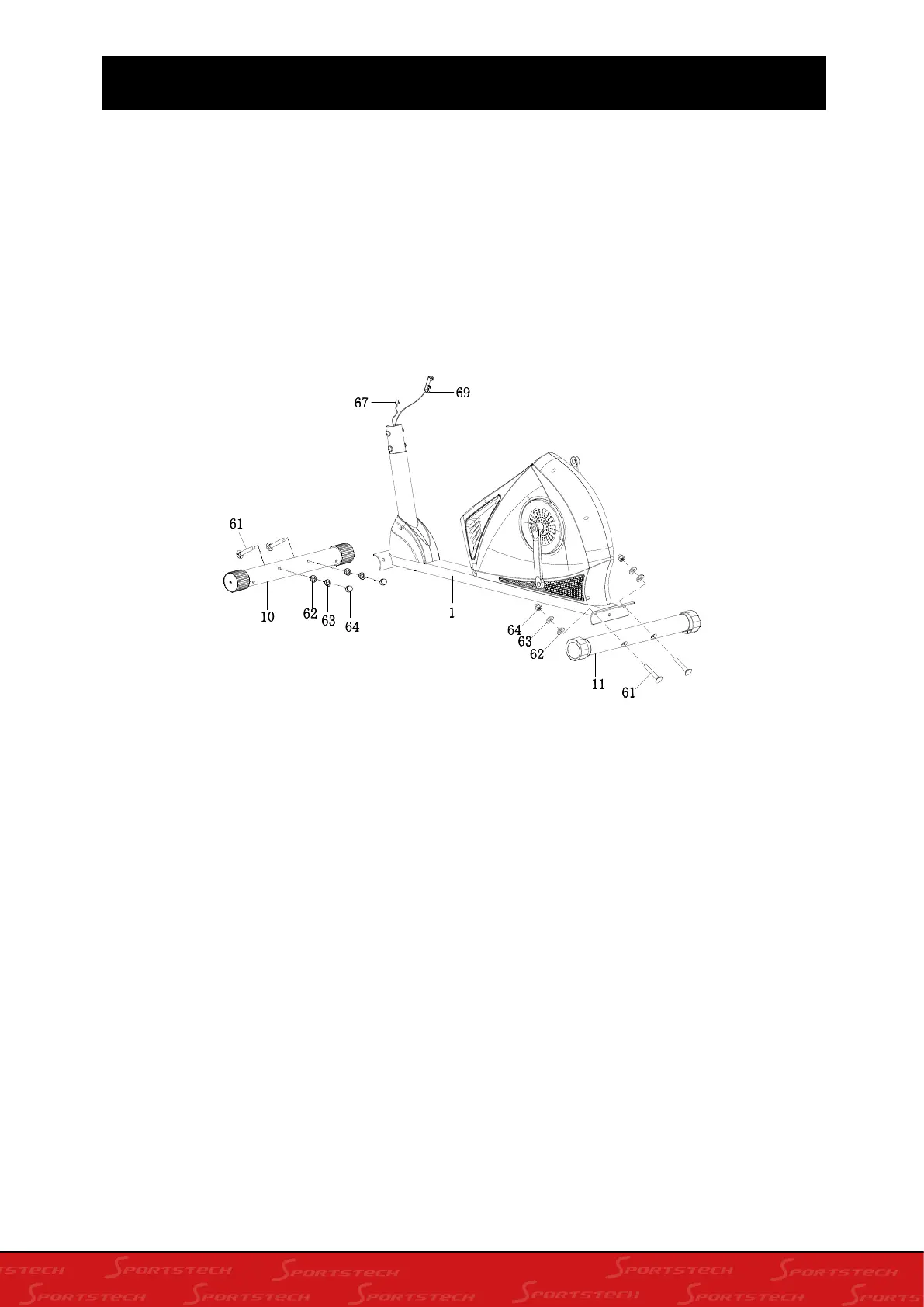 Fixez le stabilisateur avant (10) sur la courbe frontale du cadre principal (1) avec deux boulons M10x57 (61), deux