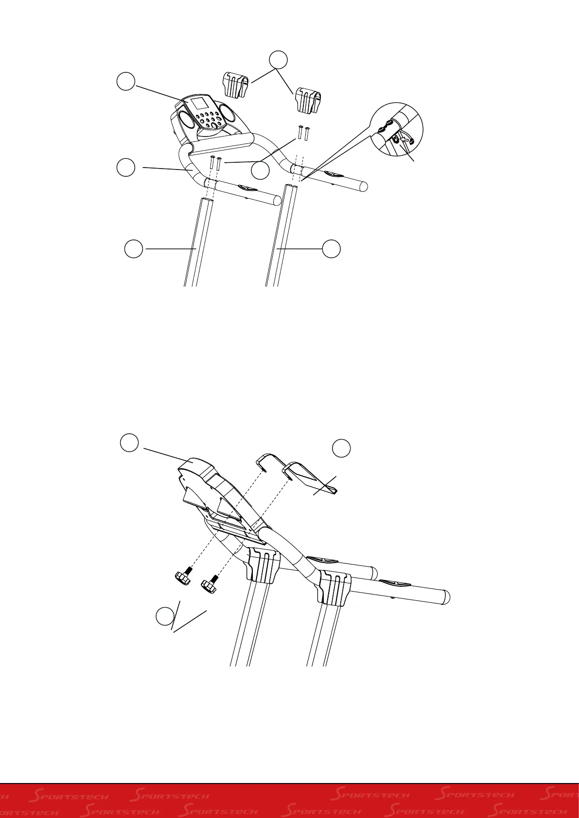 B. Ajuste el manillar (5) en ambos extremos de los tubos de soporte (3 y 4), apriete los tornillos con la llave Allen