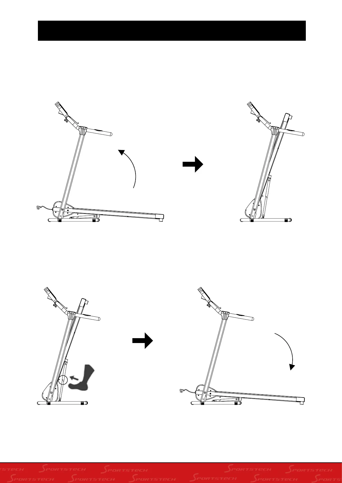 Para desplegar la caminadora, agarre firmemente el extremo posterior de la caminadora con ambas manos.