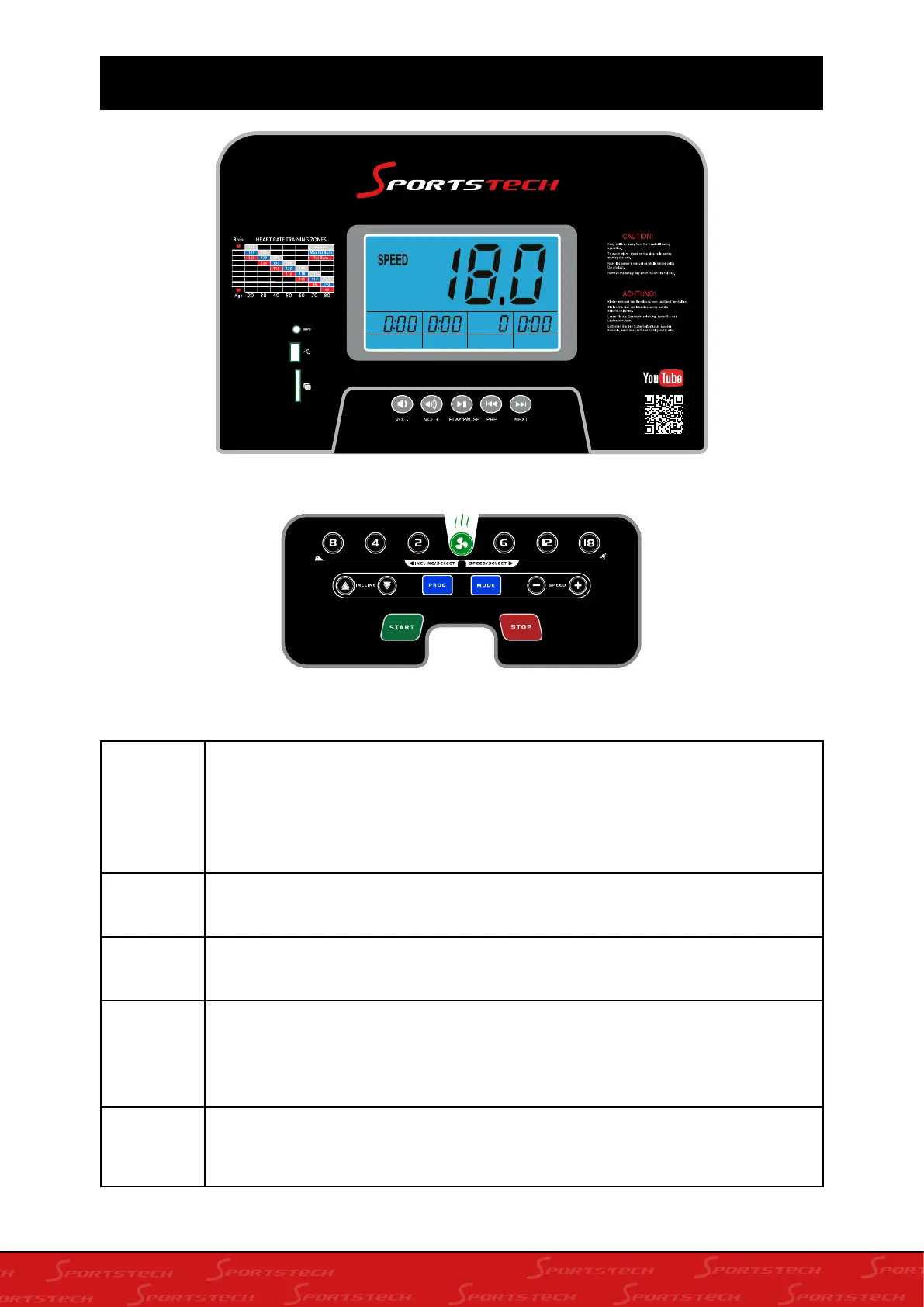 SPEED Anzeige der aktuellen Trainingsgeschwindigkeit von 1,0 bis maximal 20,0 km/h.