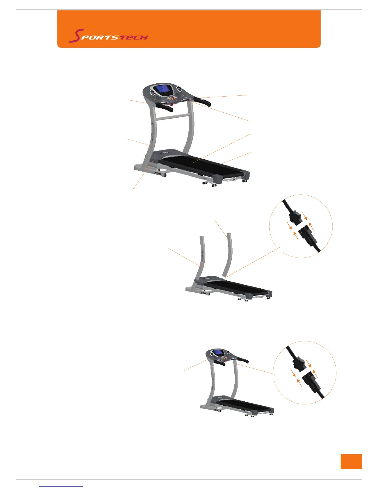 B: Lock both of the console posts onto the bottom frame with M8*15 bolt x 6pcs and busher x 6pcs