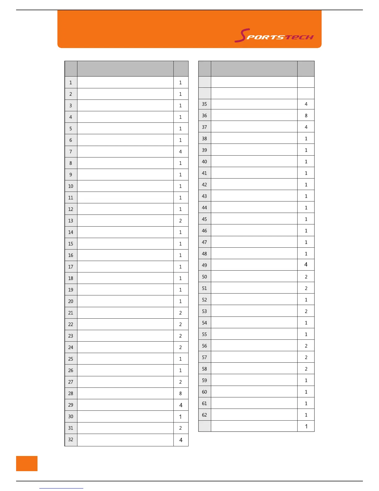 Lista de piezas