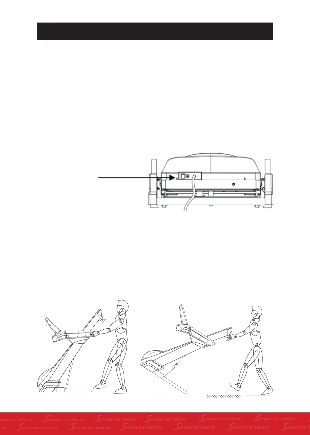 mains pour faire basculer le tapis de course vers l‘arrière après l’avoir plié.