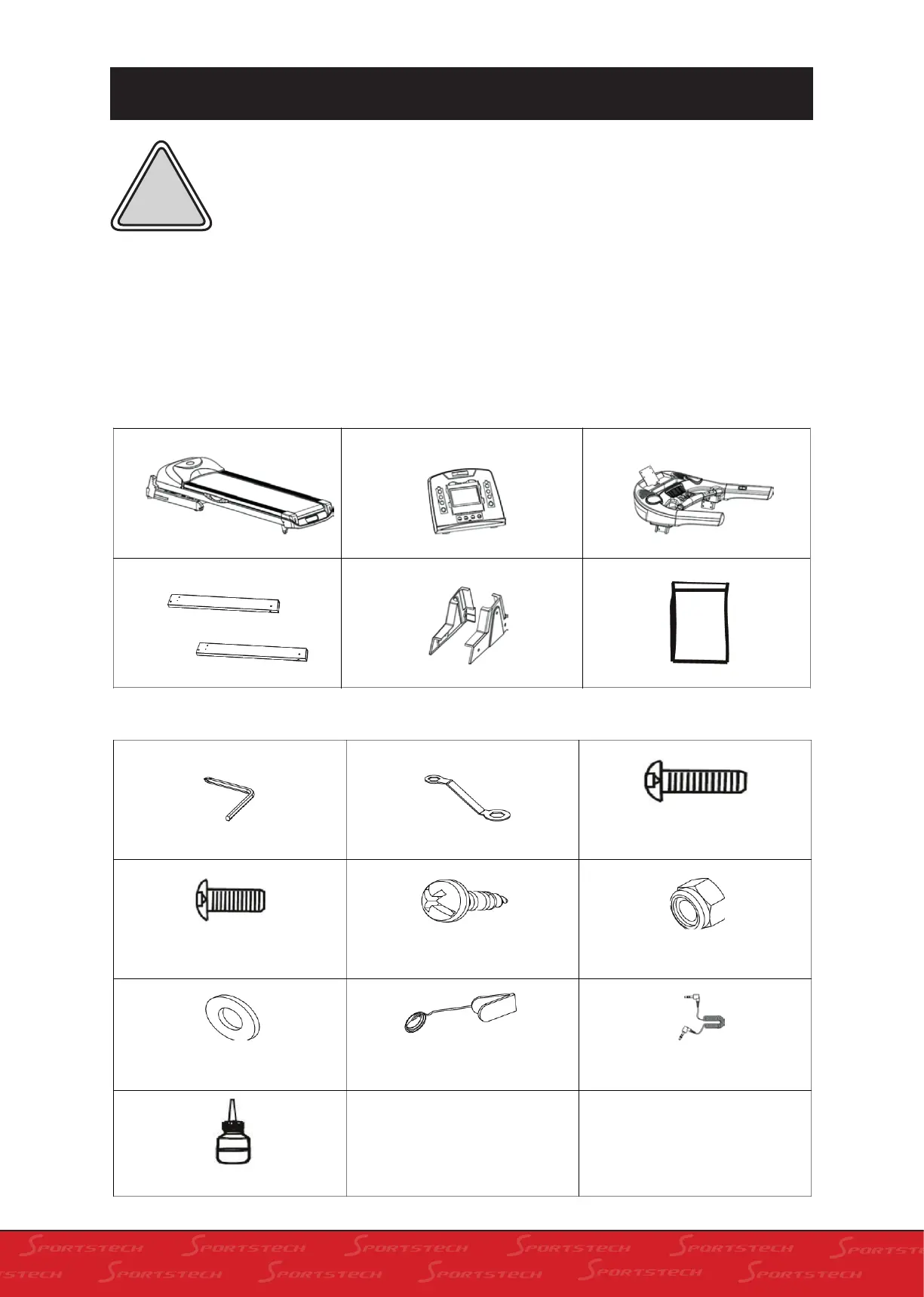 • Check all the following components. If there are missing or problematic parts, please