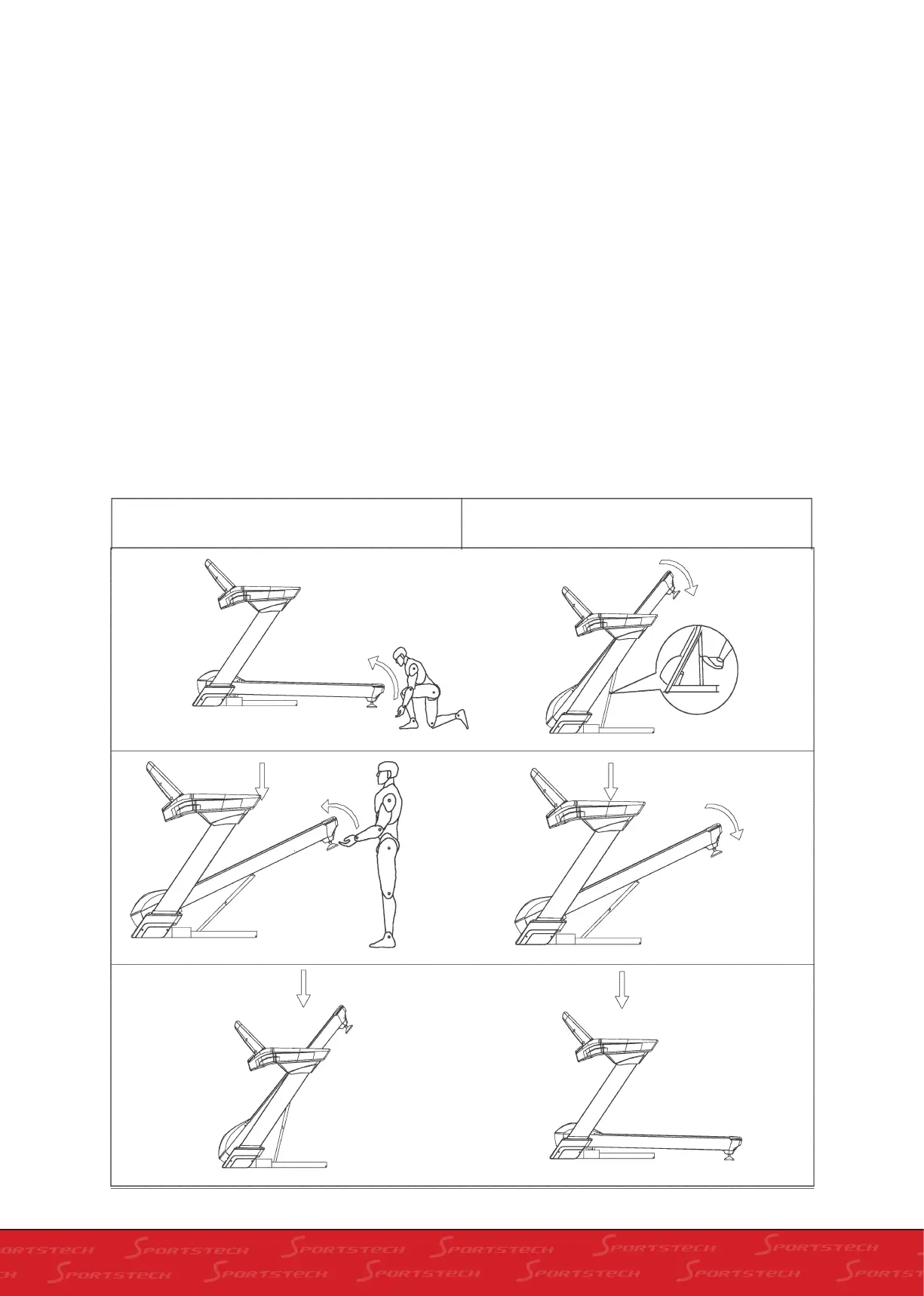 Lift the running platform with hands until it is stuck by gas spring casing.
