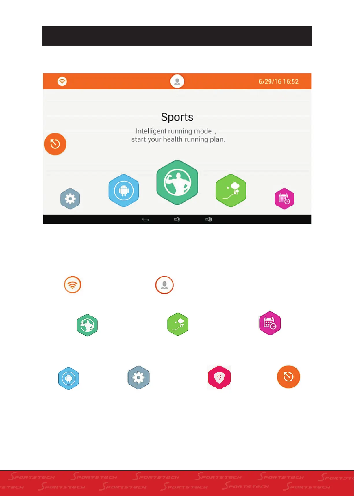 On the upper left, there is WIFI connection in fan and treadmill status. In the middle, there is user login