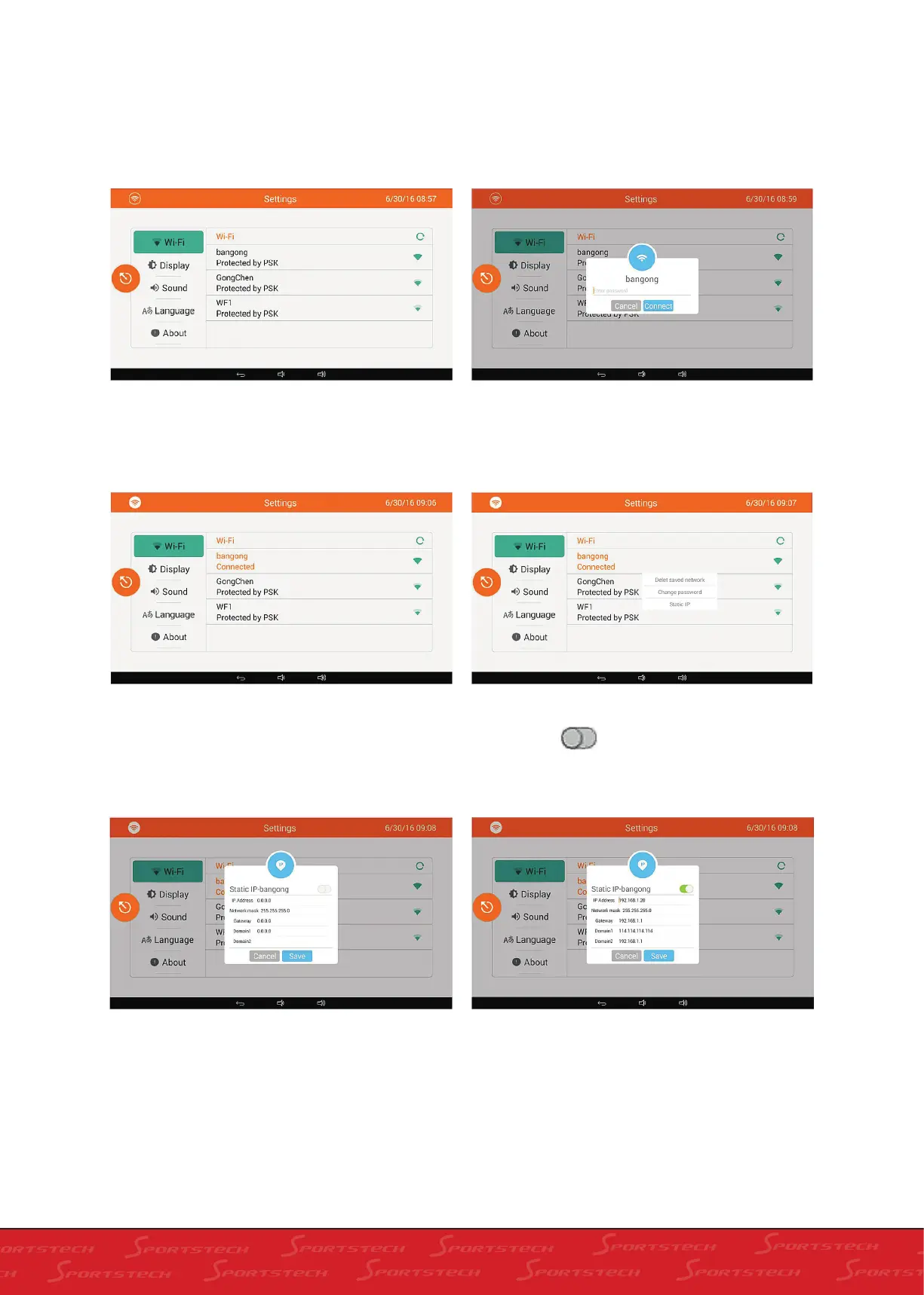 Static IP settings are as follows:
