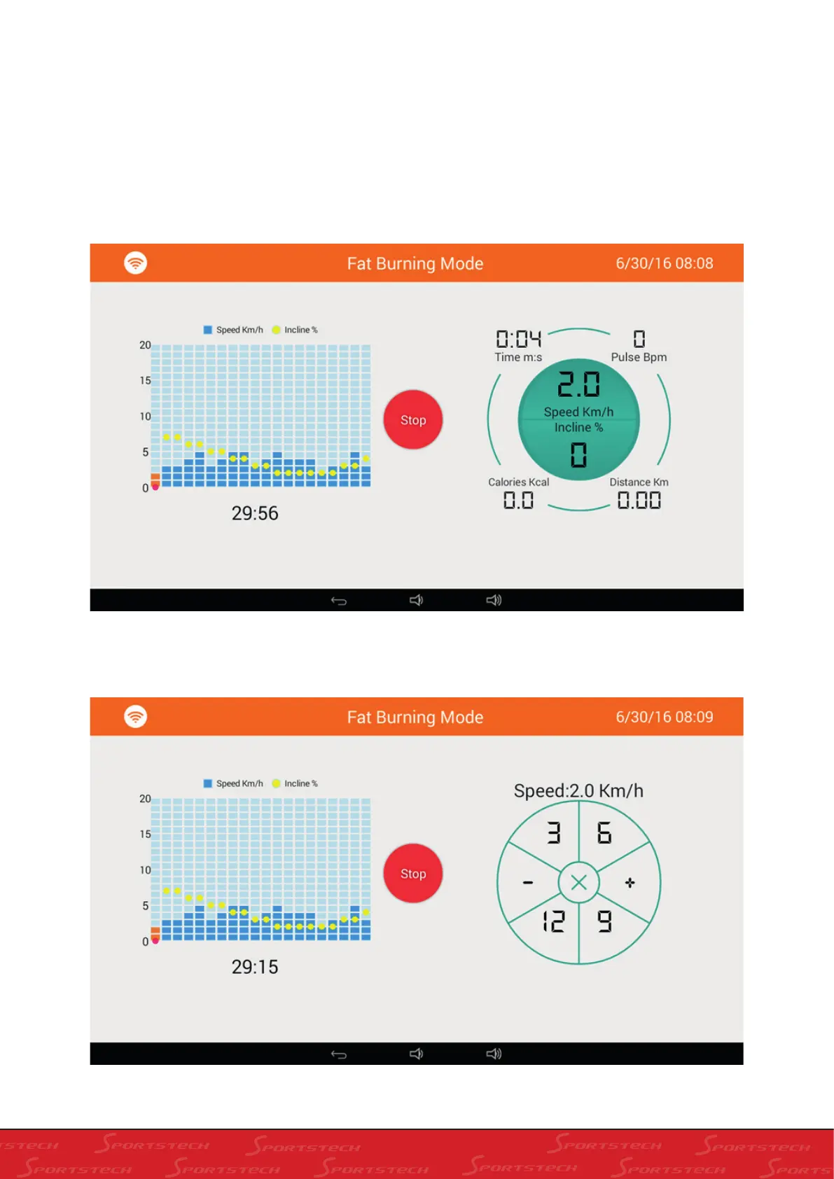 4). Press Start to start the treadmill motor and the Program as below