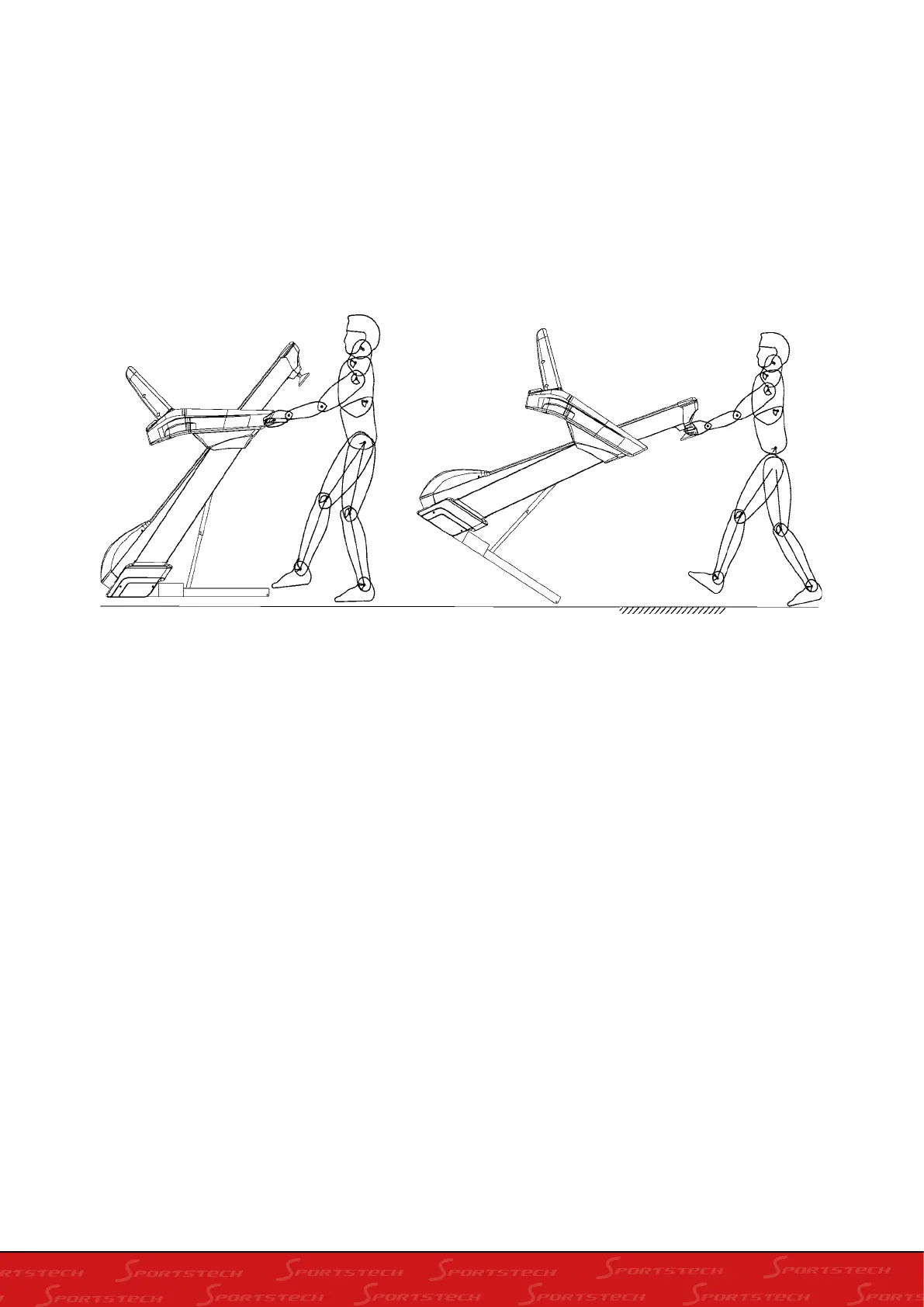 hinten mit den Händen, damit das Laufband nach dem Zusammenklappen nach