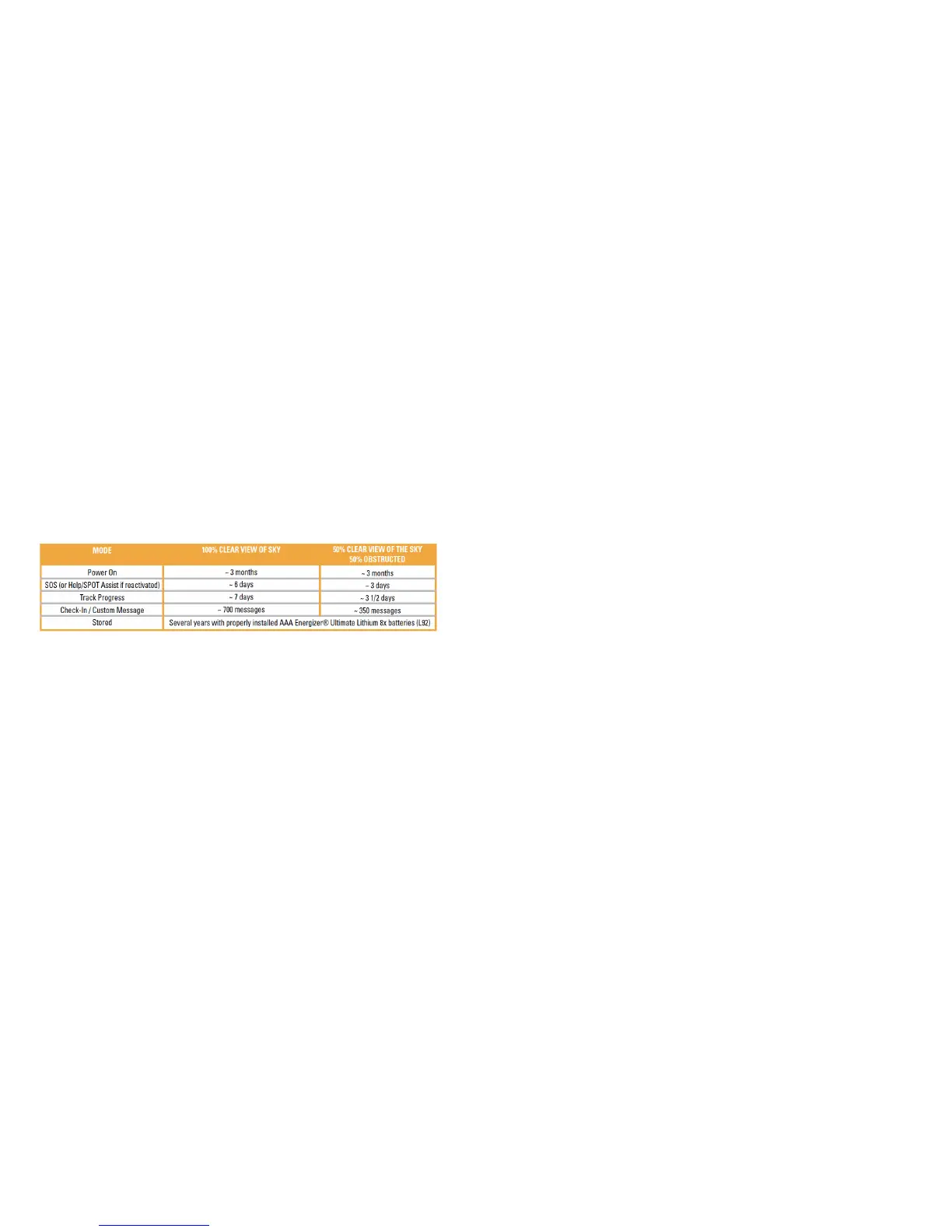 SPOT performance and battery life may be degraded in operating environments where the