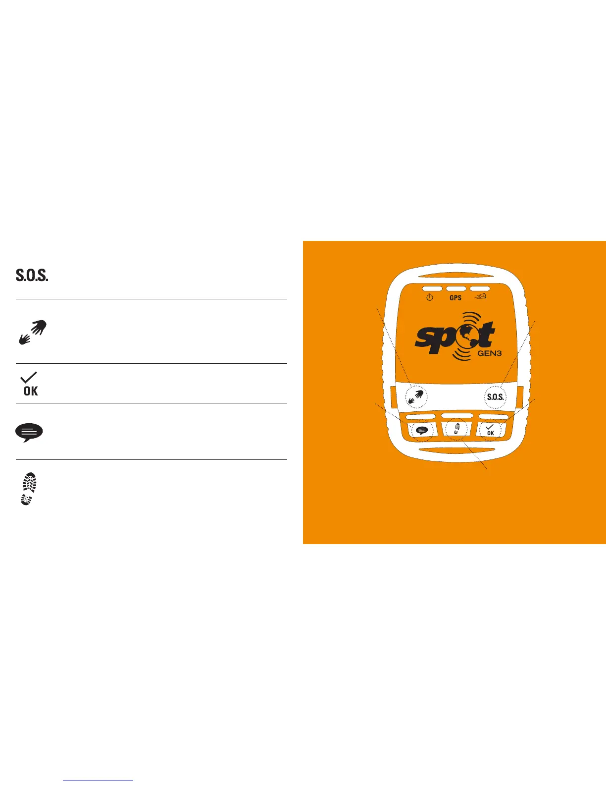 S.O.S. — Press and hold the button until the light blinks green. Sends a message