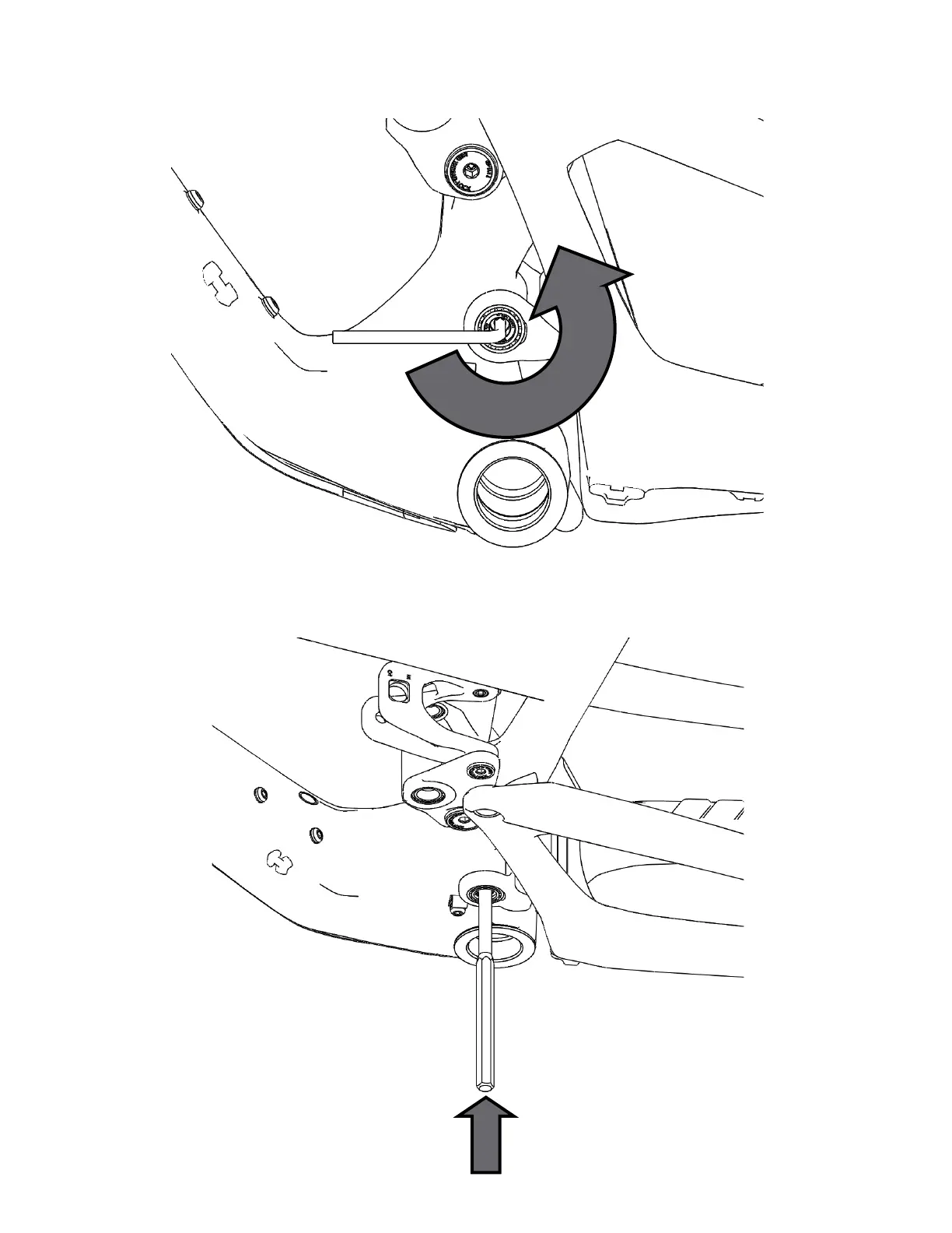 5. Using a T30 Torx tool, loosen the preload screw from the pivot axle 5-6 full turns:
