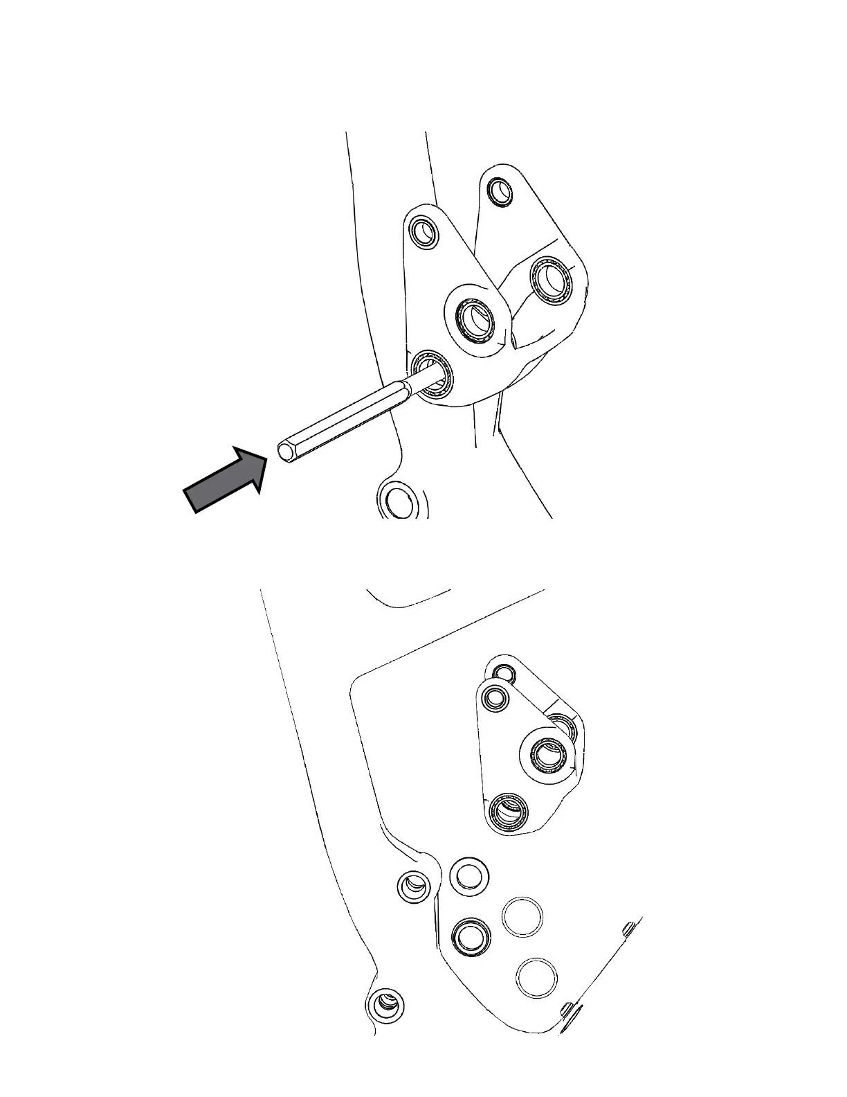 7. Insert the punch tool into the seat tube pivot bore from where the drive side pivot axle was