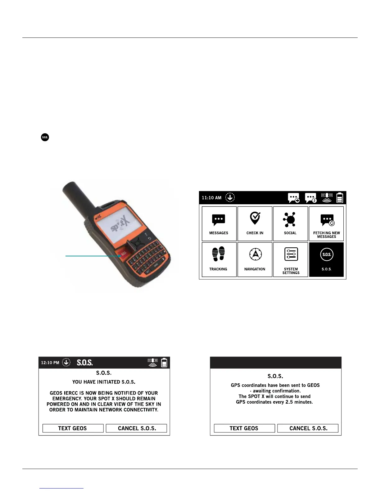 NOTE: Powering off the SPOT X will cancel the S.O.S.