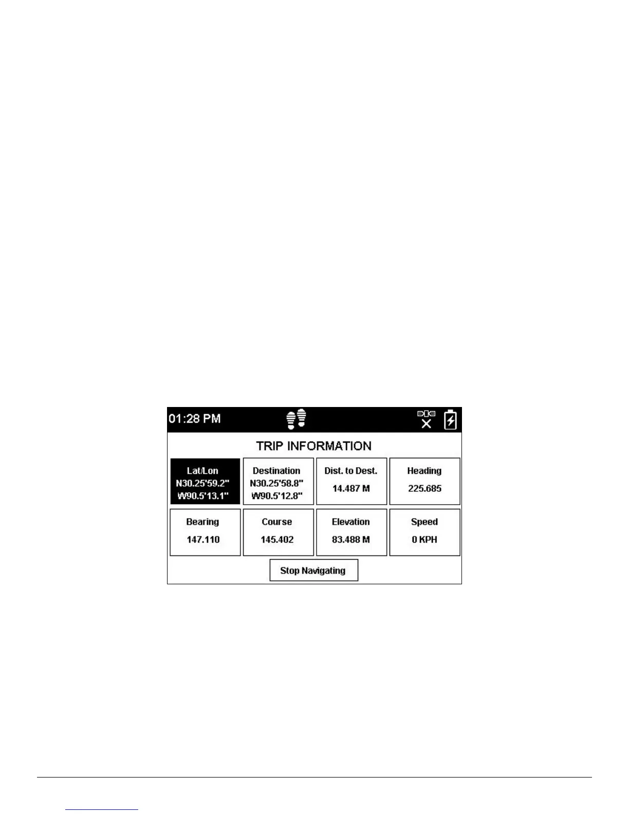 3. The Trip Info Data Field screen will be displayed. Highlight and select the appropriate navigational data you wish