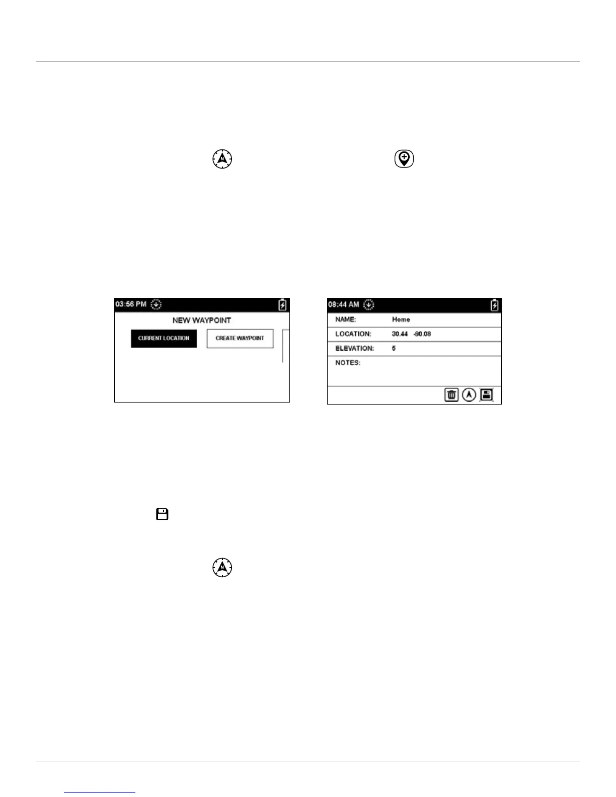• The Waypoint screen will be displayed. If Current Location was selected, the Location field will input the
