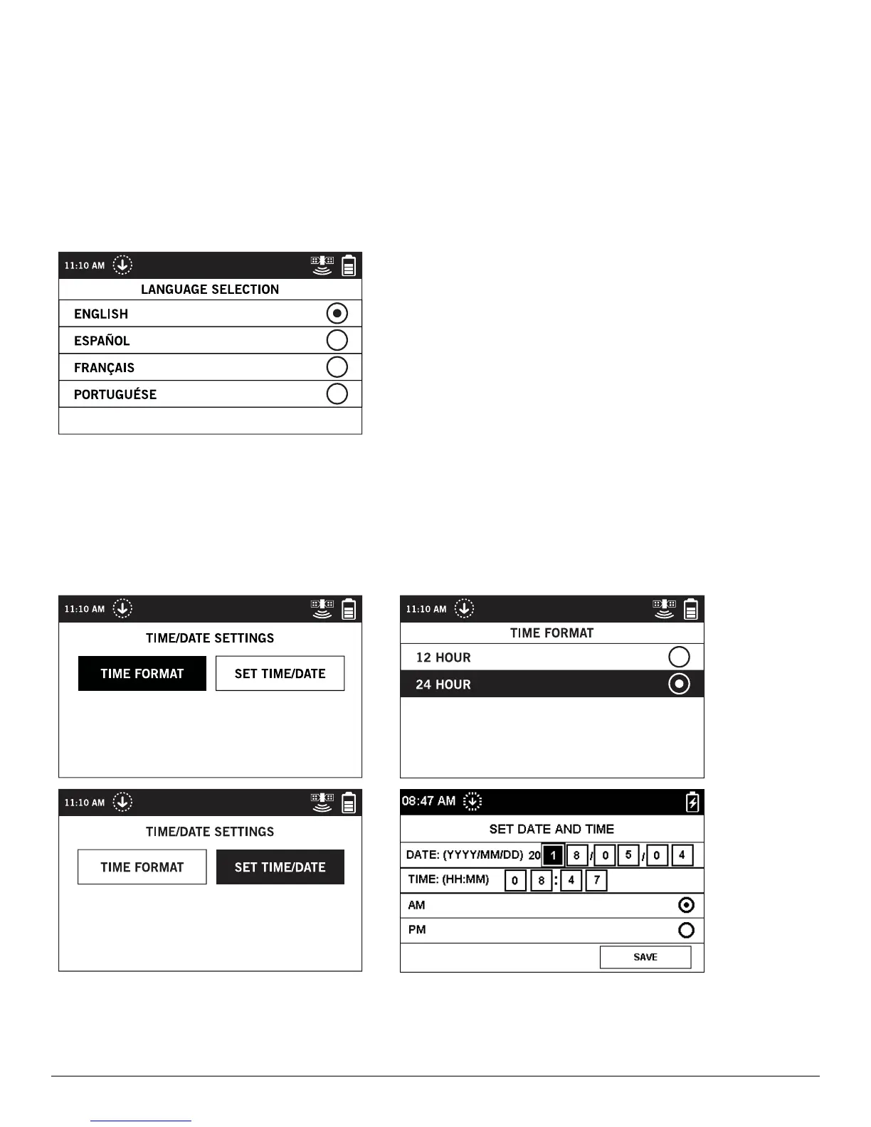 The Time/Date Settings screen allows you to configure how the time and date are displayed on your SPOT X device.