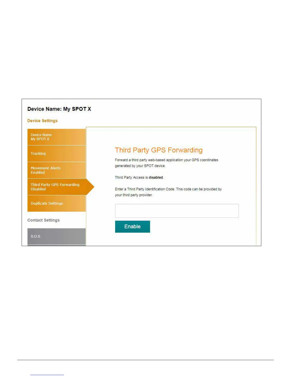 Third Party GPS Forwarding sends the SPOT X’s GPS coordinates to a designated third-party web-based