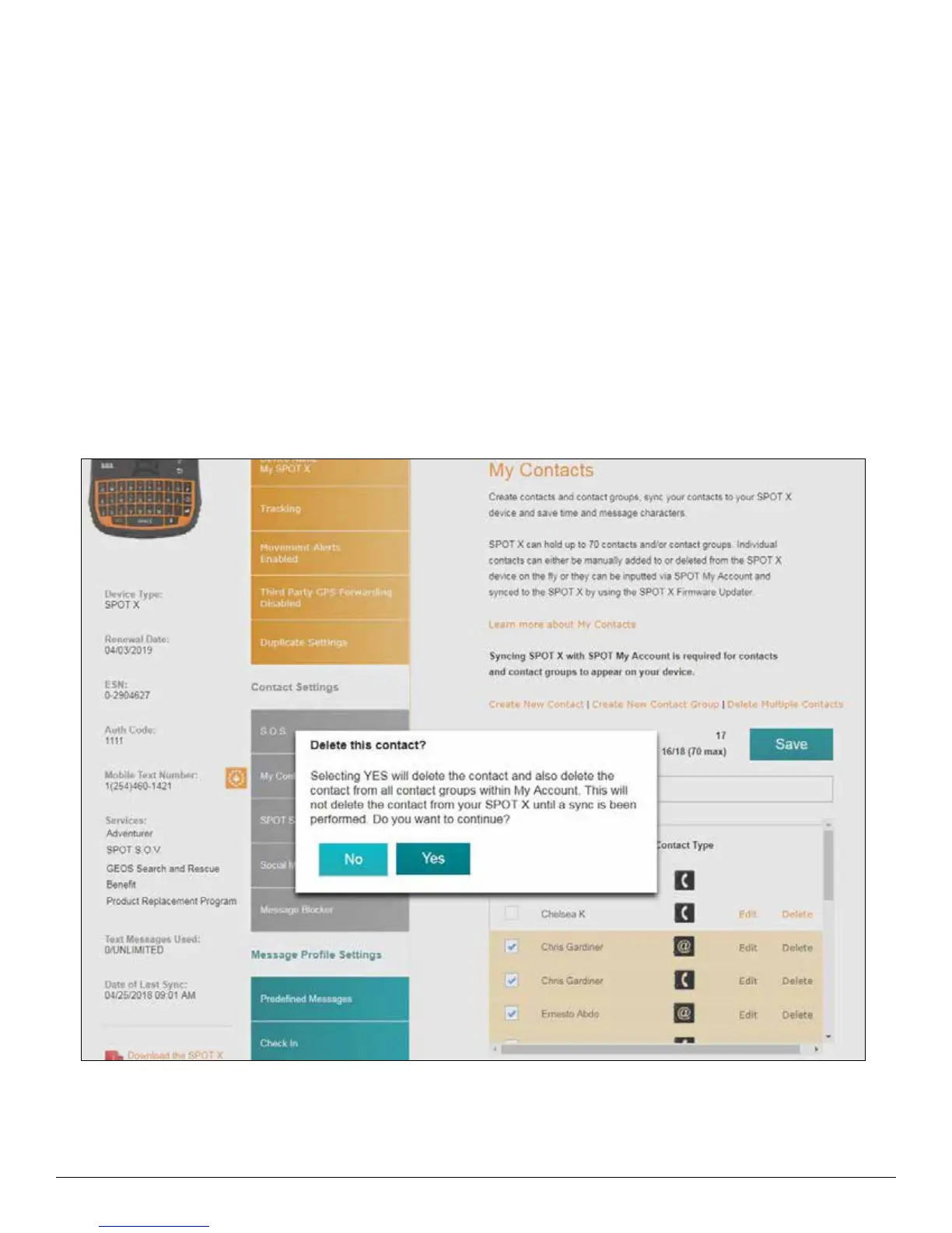 Syncing SPOT X with SPOT My Account is required for contacts and contact groups to be removed from your device.