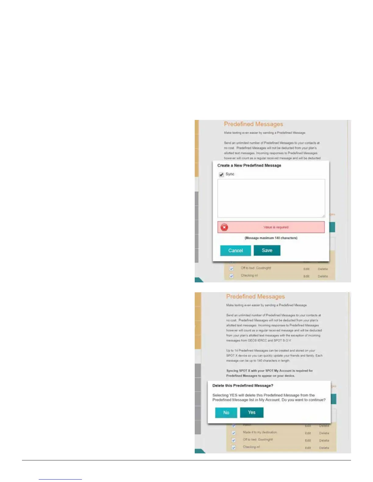 Up to 14 Predefined Messages can be created and stored on your SPOT X device so you can quickly update your