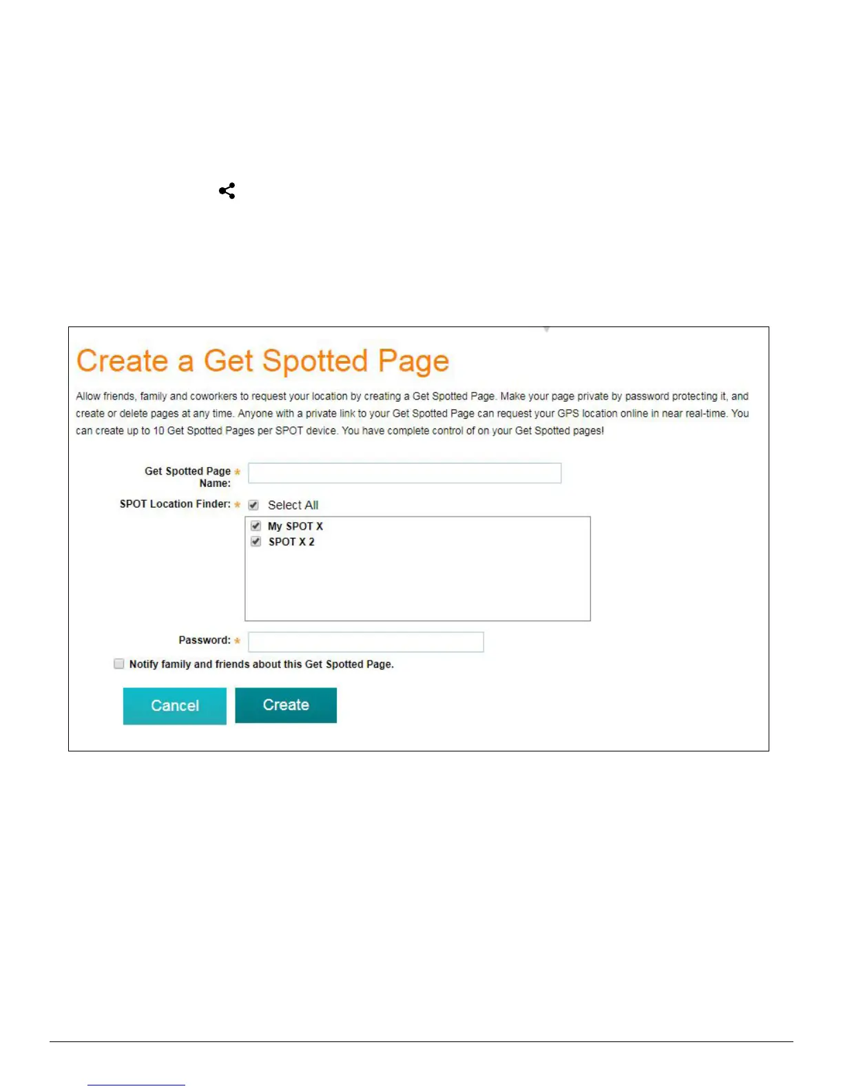 Page can request your GPS location online in near real-time. You can create up to 10 Get Spotted Pages per SPOT