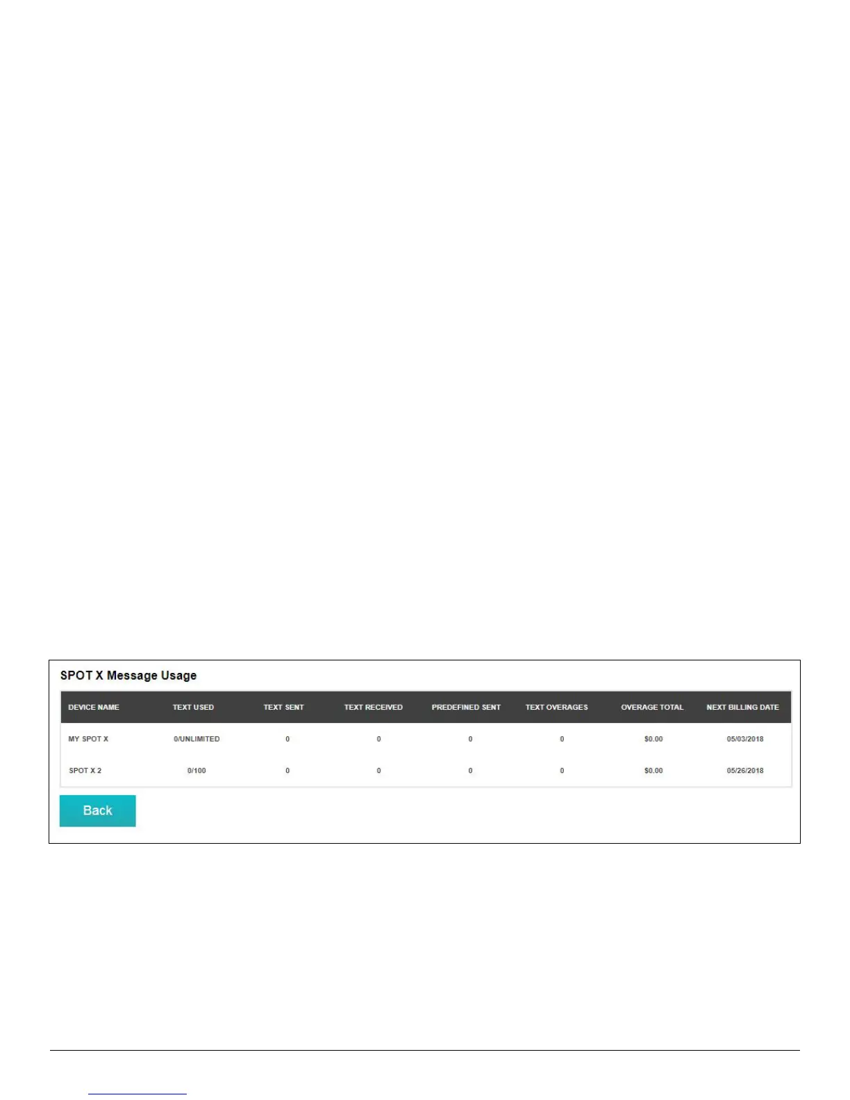 allowed by the SPOT X Service Plan. The Overage Total will appear on your next invoice.