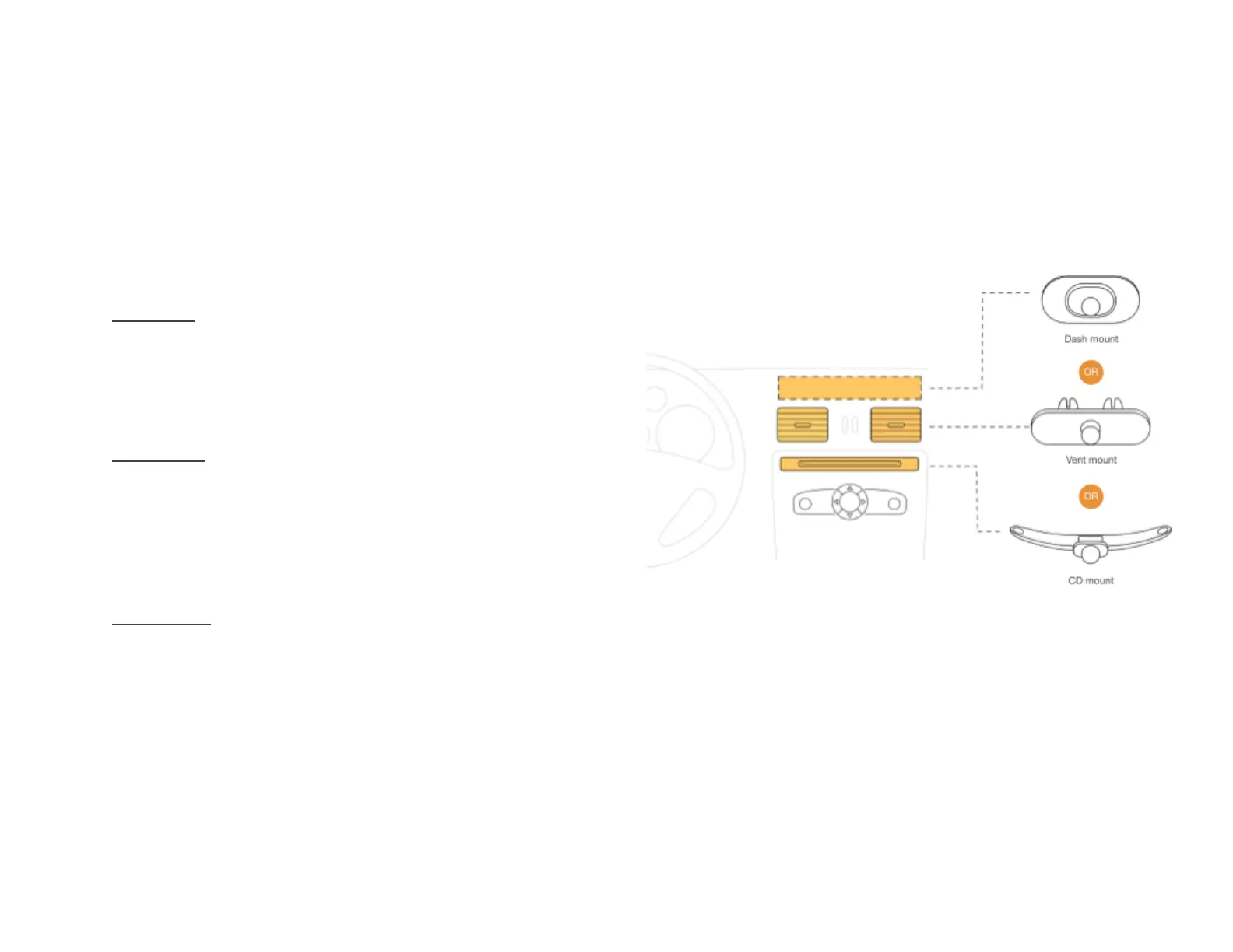 Dash mount : Attaches with adhesive to any vertical surface