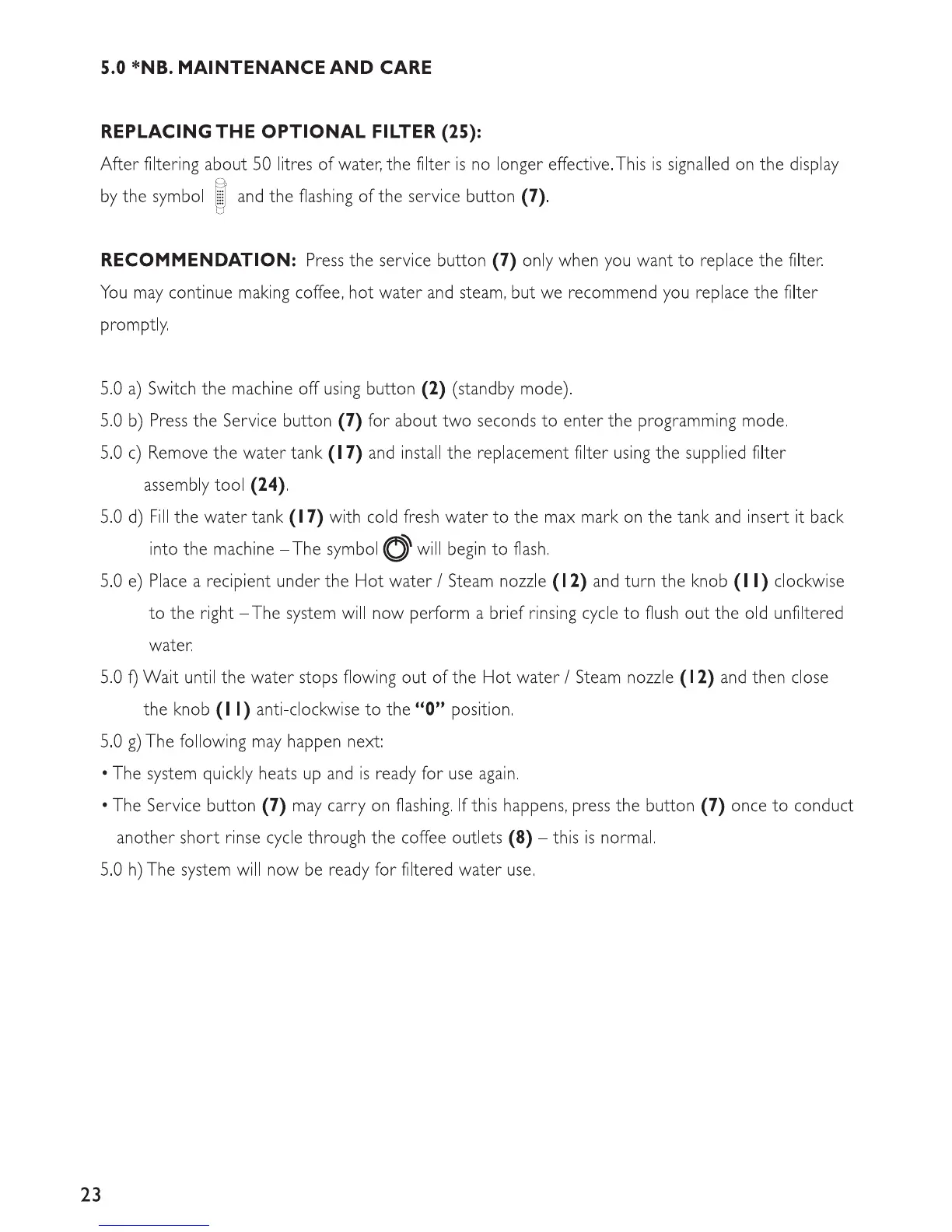 Sprada Future - MAINTENANCE AND CARE; Filter Maintenance