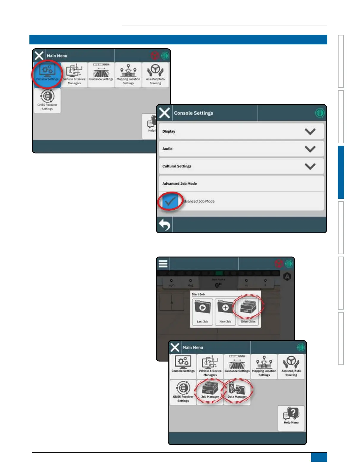 – Start Job menu on the Guidance screen
