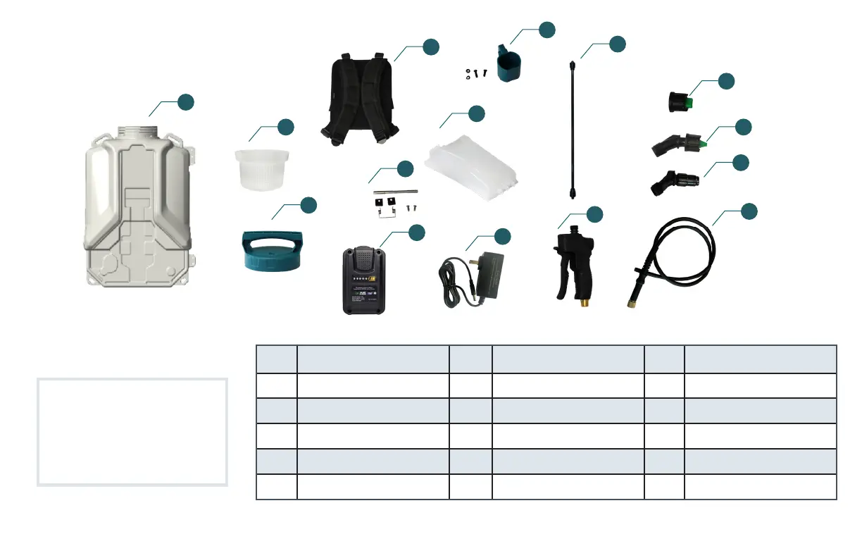 4 Backpack Straps 9 Bottom Holster & Screws 14 Adjustable Nozzle
