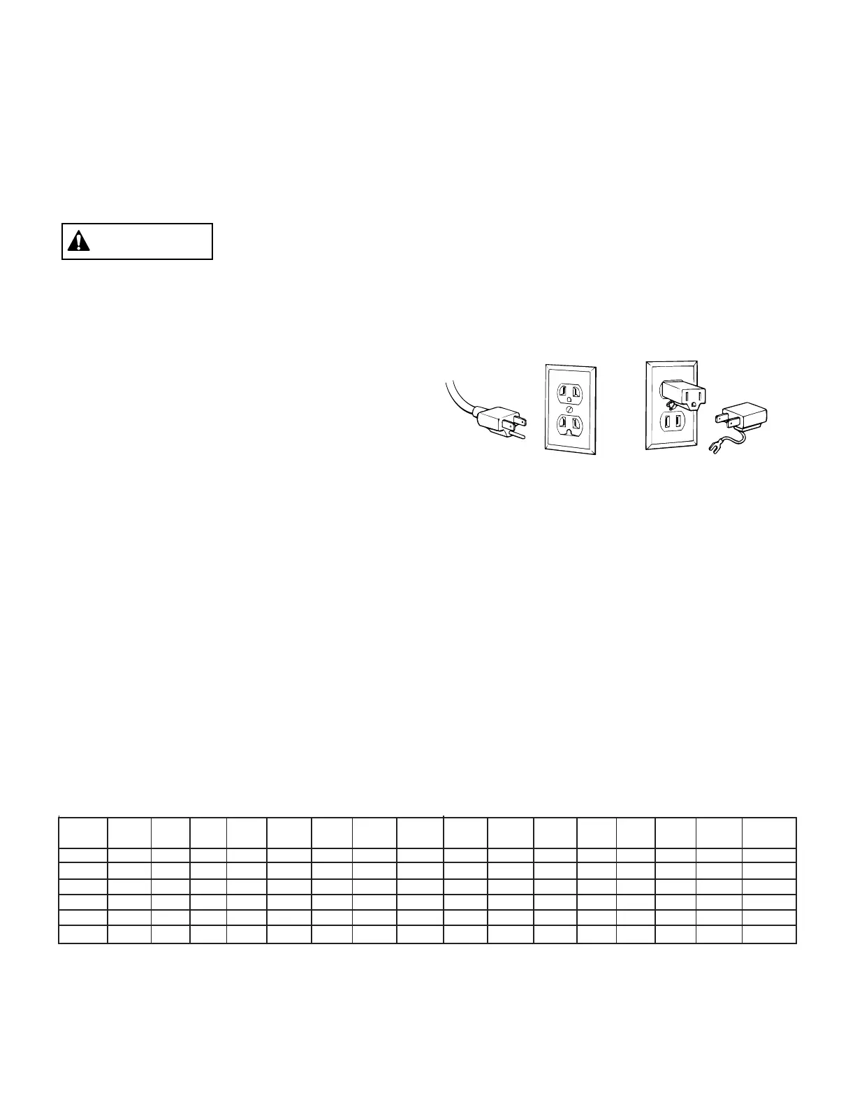 which will cause loss of power. A table of recommended extension cord sizes will be found below.