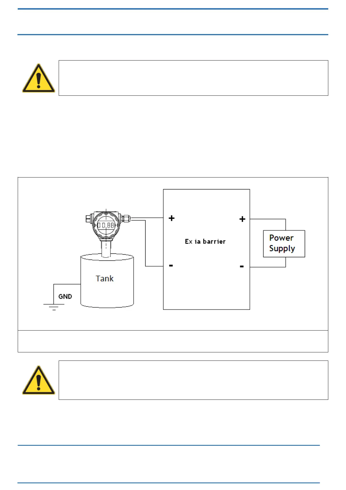Figure 13: 4 ÷ 20 mA loop connection with Ex ia barrier
