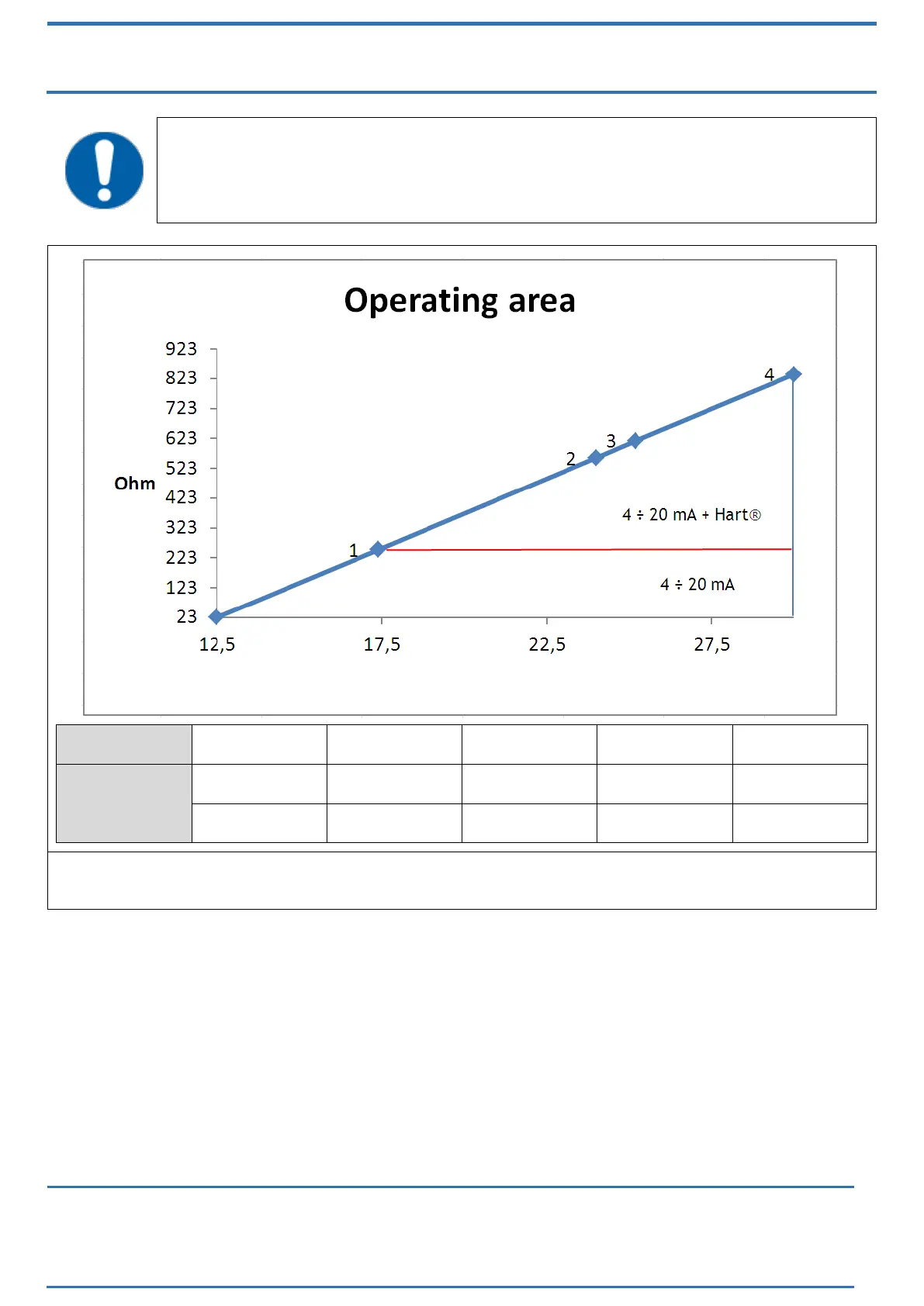 In order to obtain a 4 ÷ 20 mA + Hart® output a minimum load of 250 Ohm is