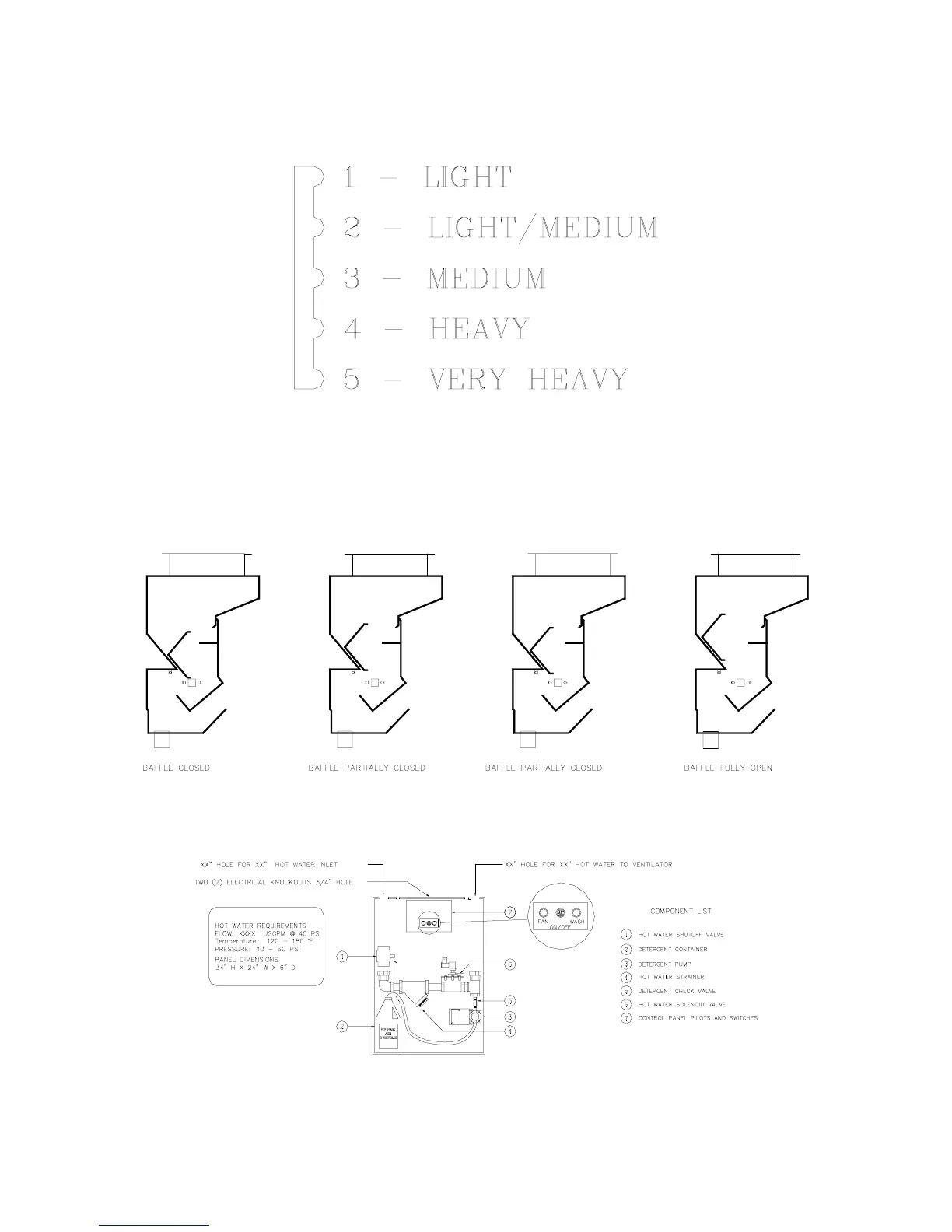 There a total of five (5) adjustment positions on each baffle. After the water wash hood is installed the baffles can be